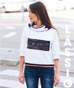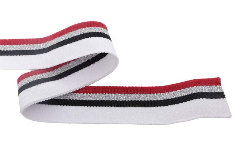 Dieses tolle Strick-Bündchen im Collegestyle mit schmalen Streifen mit Glitzer-Silber ist ein Must-have für unzählige neue Designmöglichkeiten und grenzenlose Kreativität. Es wird einfach angenäht. Der Bündchenstoff eignet sich hervorragend für Abschlüssen an (College-)jacken, Hosen, Shirts & Pullovern. Abbildung am Halsausschnitt und Arm in schmaler Variante am Kleid Marika. Abbildung Saum in breiter Variante in anderer Farbstellung. Schnittmuster Damenkleid Helena zur Inspiration.