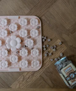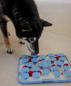 - Einfach Nassfutter, Joghurt, Erdnussbutter, Bananen, Hundesmoothie, Hüttenkäse, Leberwurst und Leckerlis etc. auf der Oberfläche verteilen und schon geht es für einige Minuten intensiver Beschäftigung los