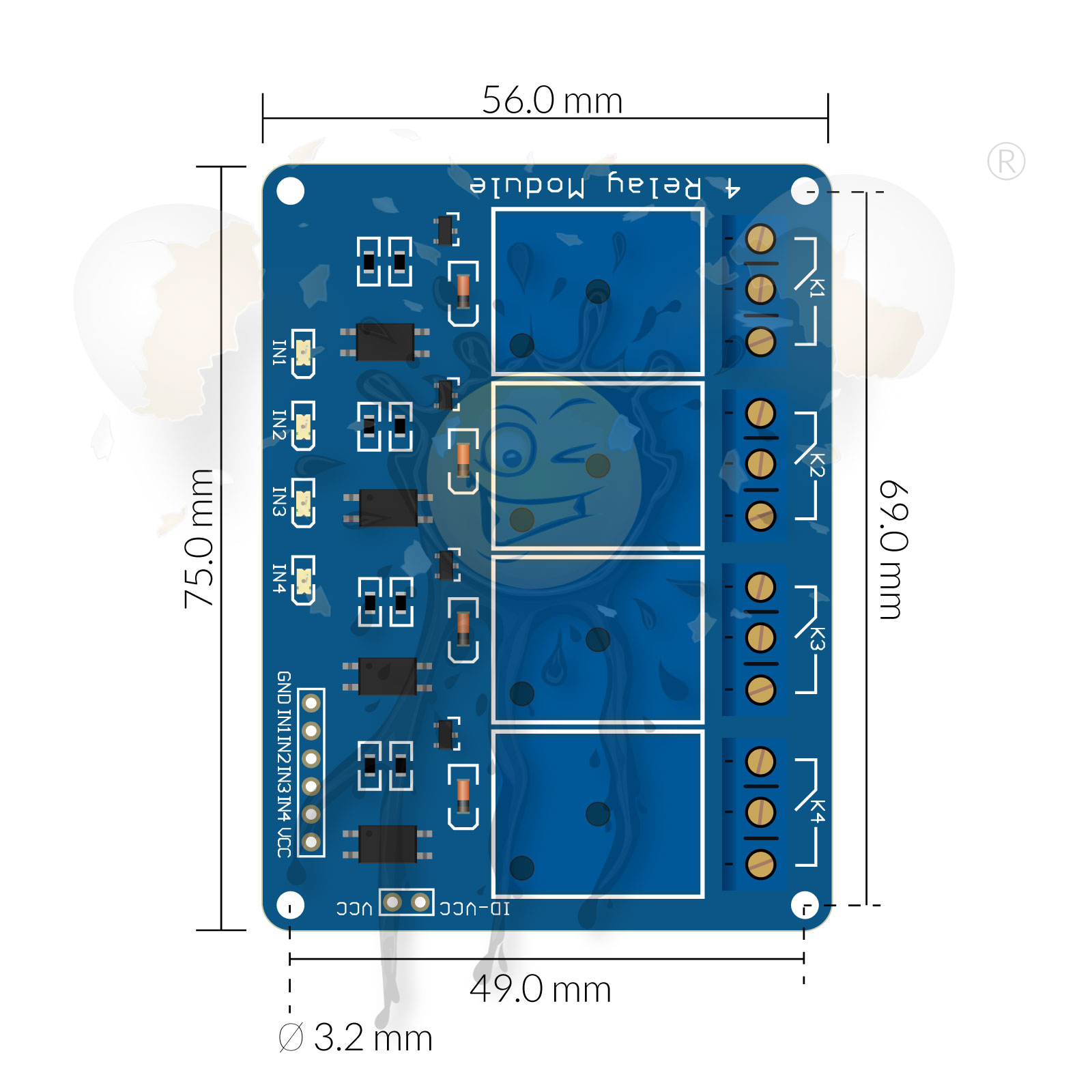 4 Channel Relais Modul Dimensions © androegg