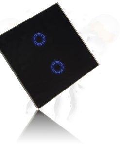 The 2 Channel IoT RF Switch is switchable thru soft touch function (fron glas panel) also over RF Signal (remote control functionality).