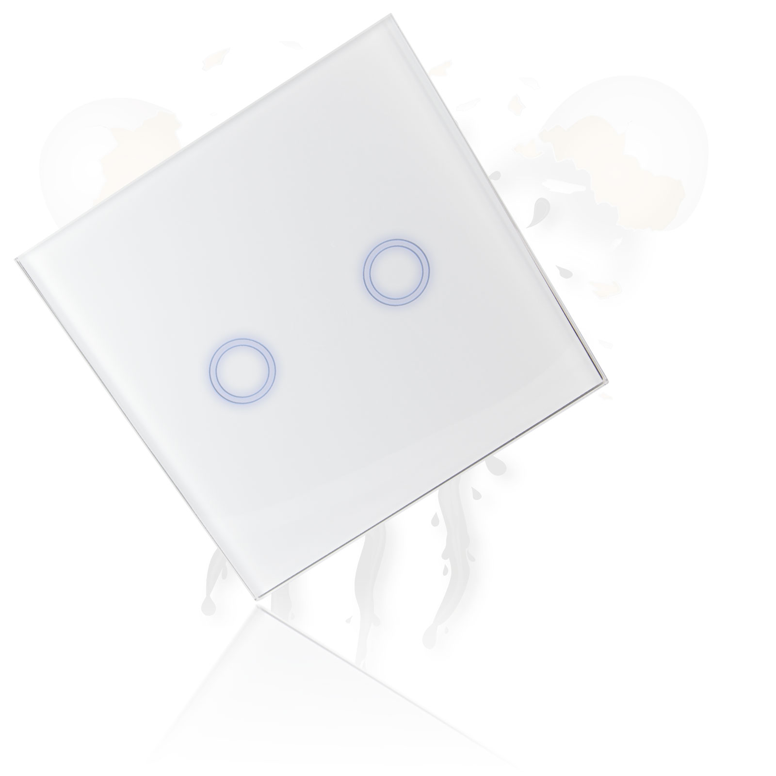 433 MHz. IoT Funk Lichtschalter RF Switch 2 Kanal front glas panel white / black 300W |