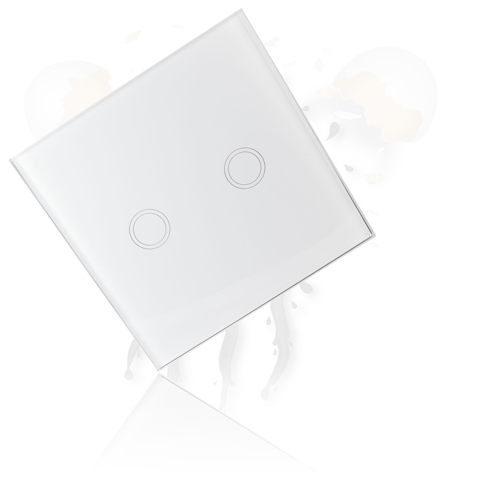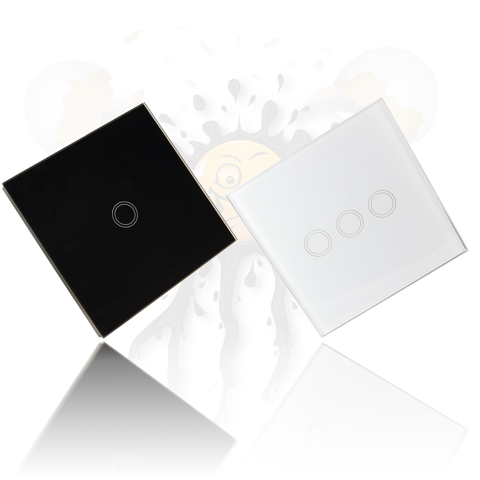 Der 2 Kanal Funk Lichtschalter vereint Design und Funktionalität. Neben dem manuellen Schalten mittels Touch Funktion, können Schaltfunktionen zusätzlich über Funk ausgeführt werden. Das Front Panel des 433 MHz. Funk Lichtschalters besteht aus kratzfestem, pflegeleichtem Glas und ist in weiss oder schwarz lieferbar. Das Gehäuse des Funk Lichtschalter ist aus feuerfestem Kunststoff gefertigt und ist für den Unterputz Einbau geeignet. Der Funk Schalter erlaubt bis zu 300 W pro Kanal. Licht Schalten über Funk Das Pairing mit unserer RF Funkfernbedienung (im Lieferumfang nicht enthalten) ist denkbar einfach: 1 Taste für an- aus- Funktion: