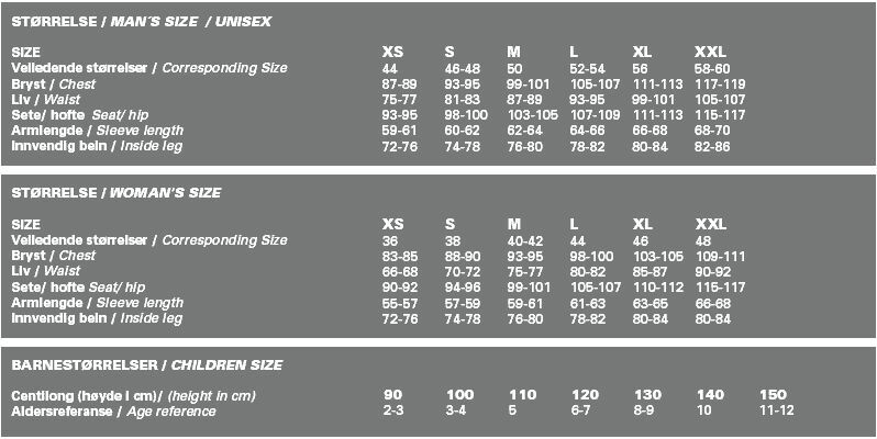 (siehe Angaben lt. Größentabelle Aclima Norwegen)