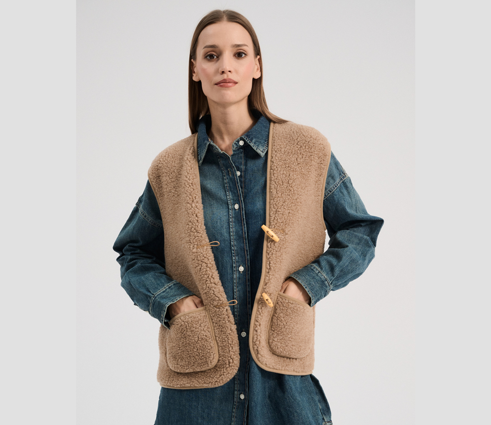 Alwero – Bodywarmer „Alpen 3.0“ Adult, Biowolle, Tan, ultra light