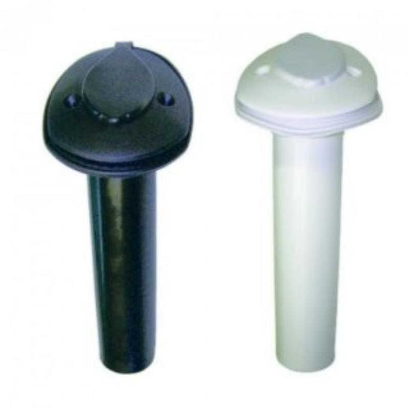 Rutenhalter aus stabilem und UV-beständigem Kunststoff mit Unterlage und Abdeckkappe. Am unteren Ende ist ein Steg eingebaut, der das Durchrutschen der Angelruten verhindert. Länge: ca. 24 cm, Durchmesser: ca. 40 mm Einbaudurchmesser: 48 mm