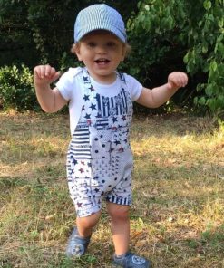 Diesen hübschen Overall, Anzug, Onesie kannst Du aus Baumwolle oder Jersey nähen, alles ist möglich. Der Vorteil bei Jersey ist, dass Du an den Trägern am Ende keine Knöpfe / Druckknöpfe einarbeiten musst, da sich das Material beim Anziehen dehnen kann. Der Anzug ist leicht genäht und auch für Anfänger geeignet. Mit und ohne Body kannst Du den Anzug sehr lange einsetzen, auch aus einem weichen Babycord genäht sieht er hübsch aus. Sehr gut passt hie auch unsere Mütze Michel dazu.