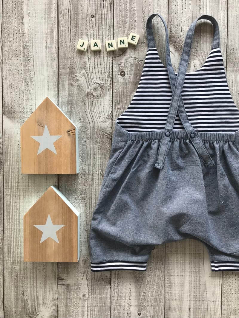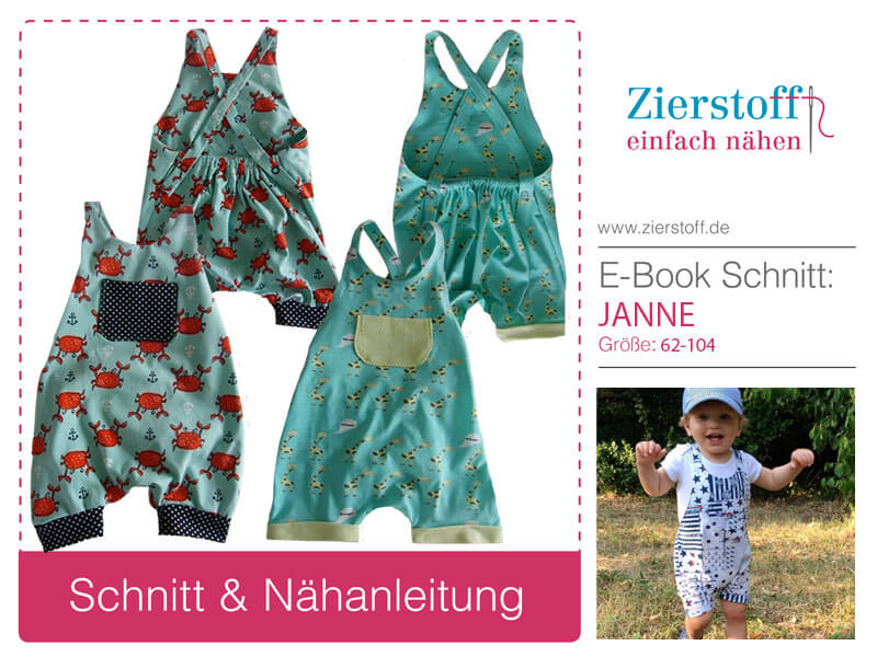 E-Book & Schnittmuster für einen hübschen unisex Romper “Janne”, Gr. 62 – 104.