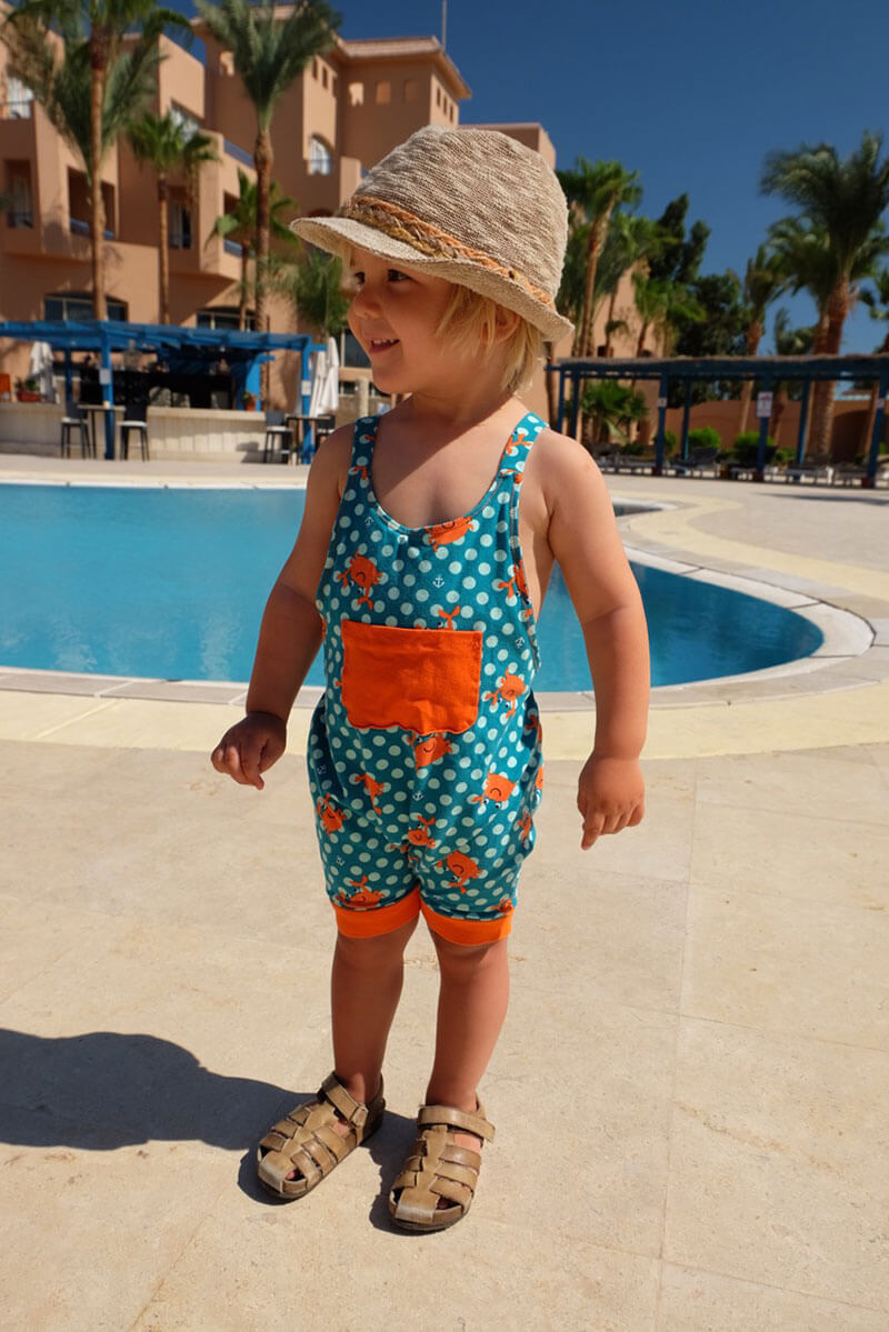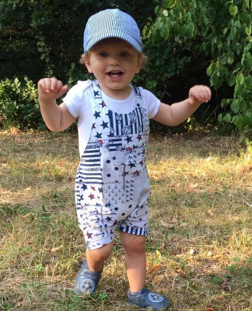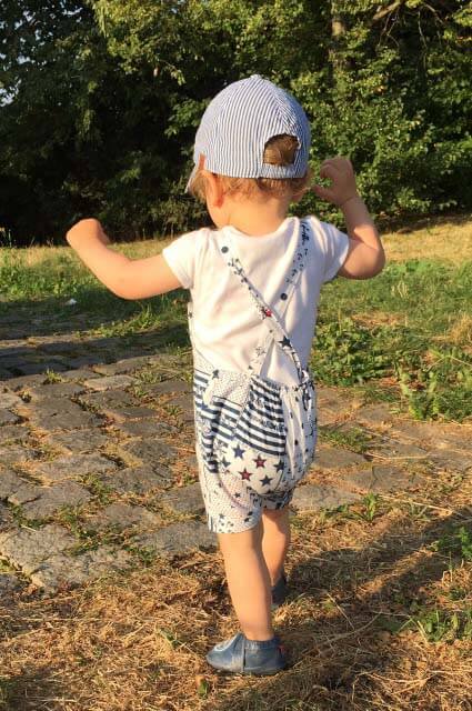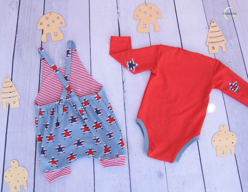Diesen hübschen Overall, Anzug, Onesie kannst Du aus Baumwolle oder Jersey nähen, alles ist möglich. Der Vorteil bei Jersey ist, dass Du an den Trägern am Ende keine Knöpfe / Druckknöpfe einarbeiten musst, da sich das Material beim Anziehen dehnen kann. Der Anzug ist leicht genäht und auch für Anfänger geeignet. Mit und ohne Body kannst Du den Anzug sehr lange einsetzen, auch aus einem weichen Babycord genäht sieht er hübsch aus. Sehr gut passt hie auch unsere Mütze Michel dazu.