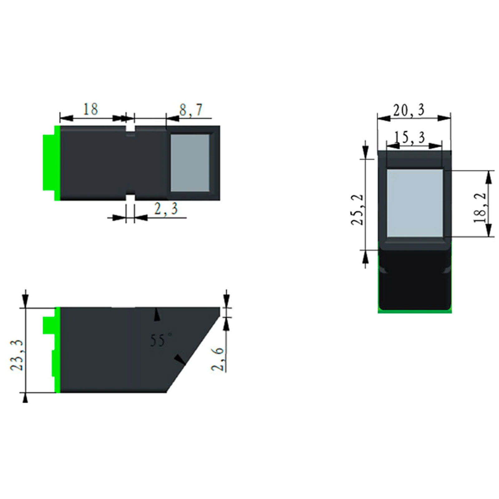 Dimesnions AS608 Fingerprint Module © androegg
