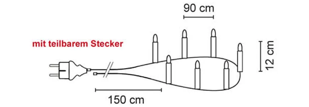 - 30-flammig: 30x E10/8V/3W – Länge ca. 26m