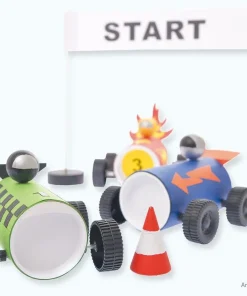 matches21 Rennauto Bastelset Kartonrollen Kinder Bausatz Kreativset Auto zum Bemalen Basteln für Kinder ab 6 Jahren