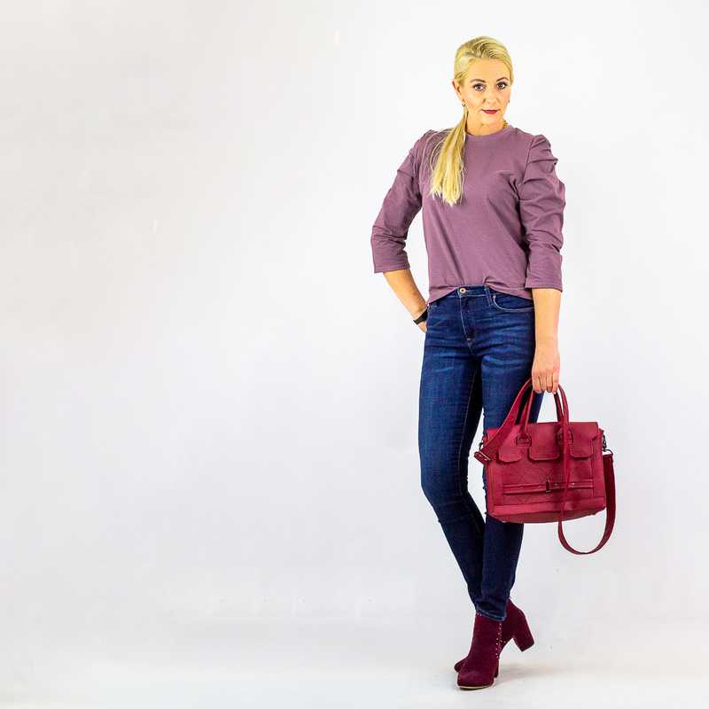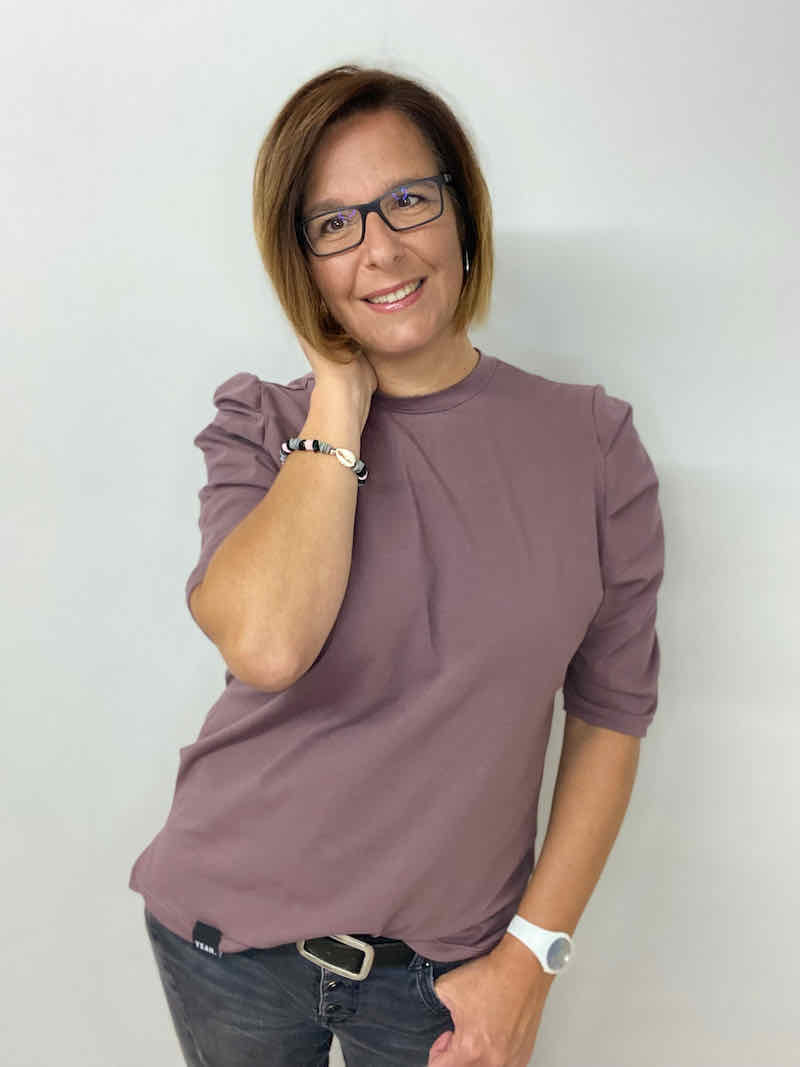 Ein wunderschöner weicher Baumwolljersey. Der Jersey ist ideal für Kleider, Shirts, Hosen, Jogginghosen, Pumphosen, Loopschals und Beanie Mützen. Abbildung Schnittmuster Shirt mit Falten Magdalena.