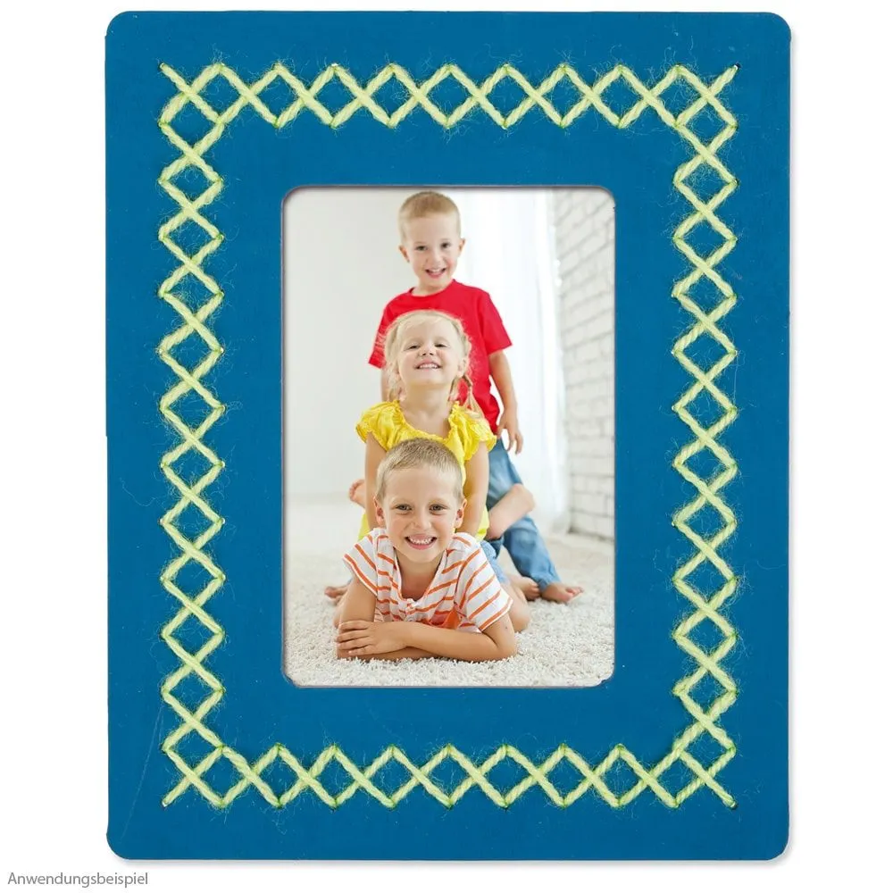 matches21 Bilderrahmen Holz Fädel & Stickbild Stickrahmen / Kinder Bastelset zum Selbstgestalten – Kinder ab 3 Jahre