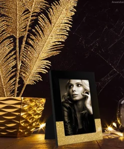 • Zauberhafte Bilderrahmen aus Holz in schwarz. Der Clou: Weiter auf der Oberfläche angebrachter Glitter in gold