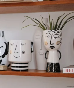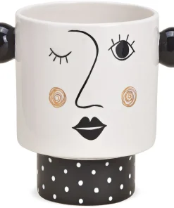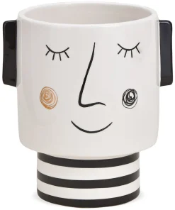 - Moderne Blumenvase / Blumentopf mit Gesicht und Ohren im auffälligen schwarz-weiß Design
