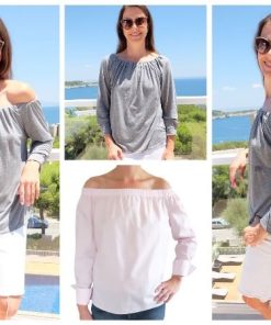 Nähanleitung & Schnitt für eine Bluse mit weitem Ausschnitt oder eine Carmenbluse “GESINE”, Gr. 158 – Damengröße 46