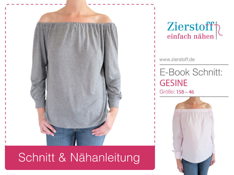 Nähanleitung & Schnitt für eine Bluse mit weitem Ausschnitt oder eine Carmenbluse “GESINE”, Gr. 158 – Damengröße 46