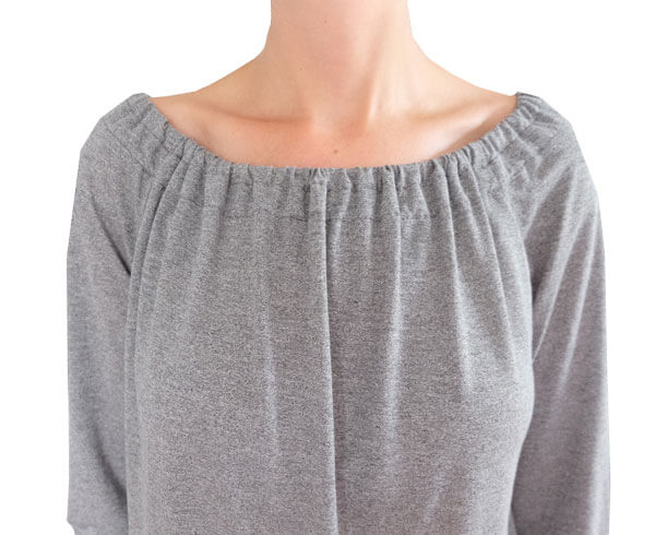 Ein 3 cm oder 1 cm breites Gummiband für den Ausschnitt.