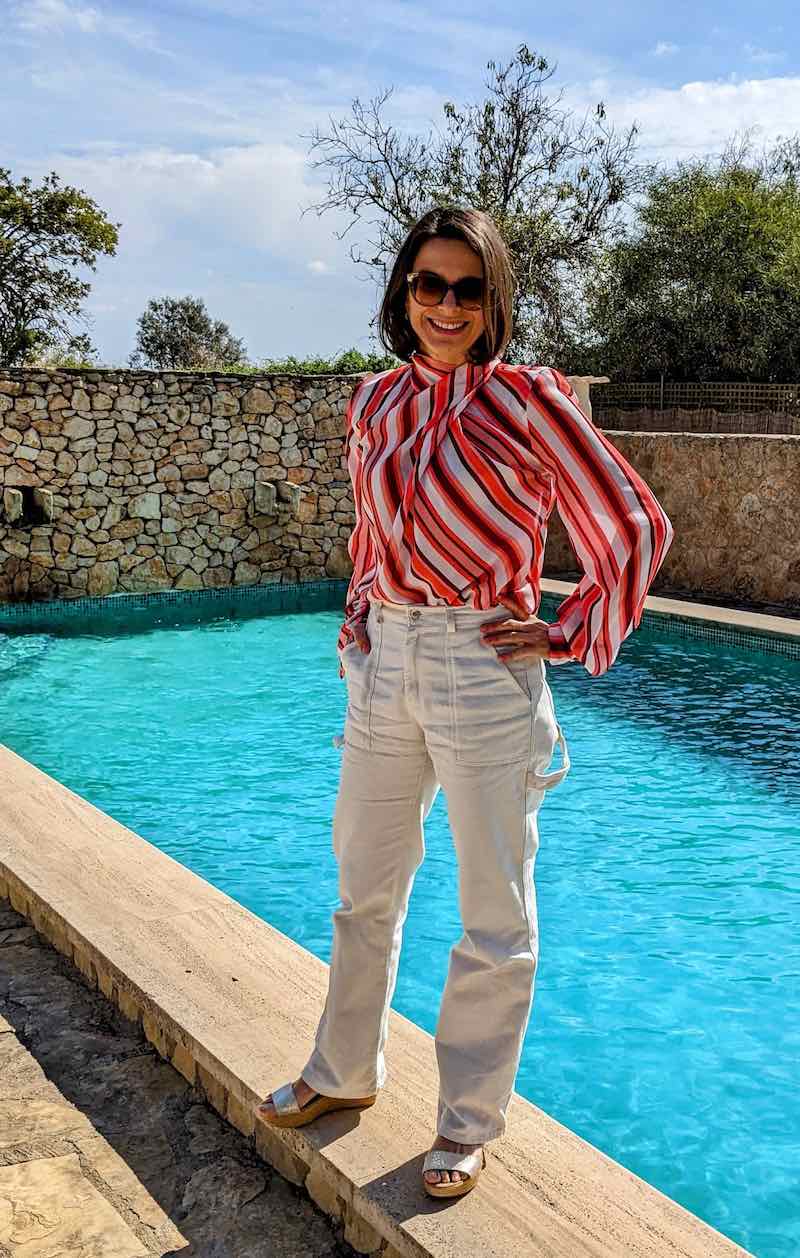 Stoffempfehlung für diesen Style: Weiche, in sich zusammenfallende Stoffe, sie können auch unelastisch sein. Je rutschiger der Stoff, desto schöner sieht am Ende die Silhouette aus.