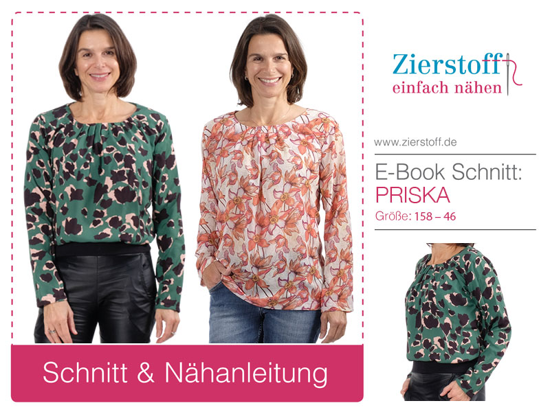 Nähanleitung & Schnitt für eine Bluse / Tunika “PRISKA”, Gr. 158 – Damengröße 46