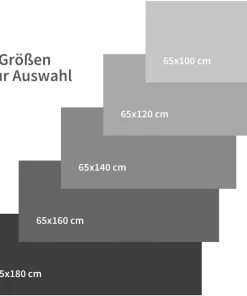 - Lieferumfang: 1 Stk – erhältlich in 5 Größen (BxL): 65×100 cm & 65×120 cm & 65×140 cm & 65×160 cm & 65×180 cm – Gesamthöhe ca. 5,5 mm – Farbe: weiß