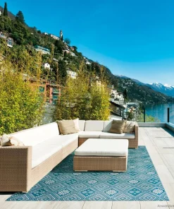 Bodenbelag NOVA INO In- Outdoor Anti-Rutsch Lack Ethno Muster blau 90×150 cm