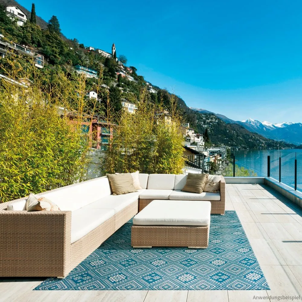 matches21 Bodenbelag NOVA INO Läufer In- & Outdoor Anti-Rutsch Lack Teppich Ethno Muster Polyester blau 90×150 cm