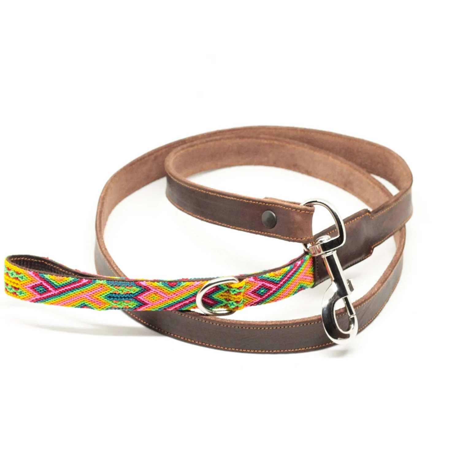 Wunderschöne Boho-Leine mit geflochtenen Akzenten. Die Leine ist etwa 2 cm breit und 145 cm lang.
