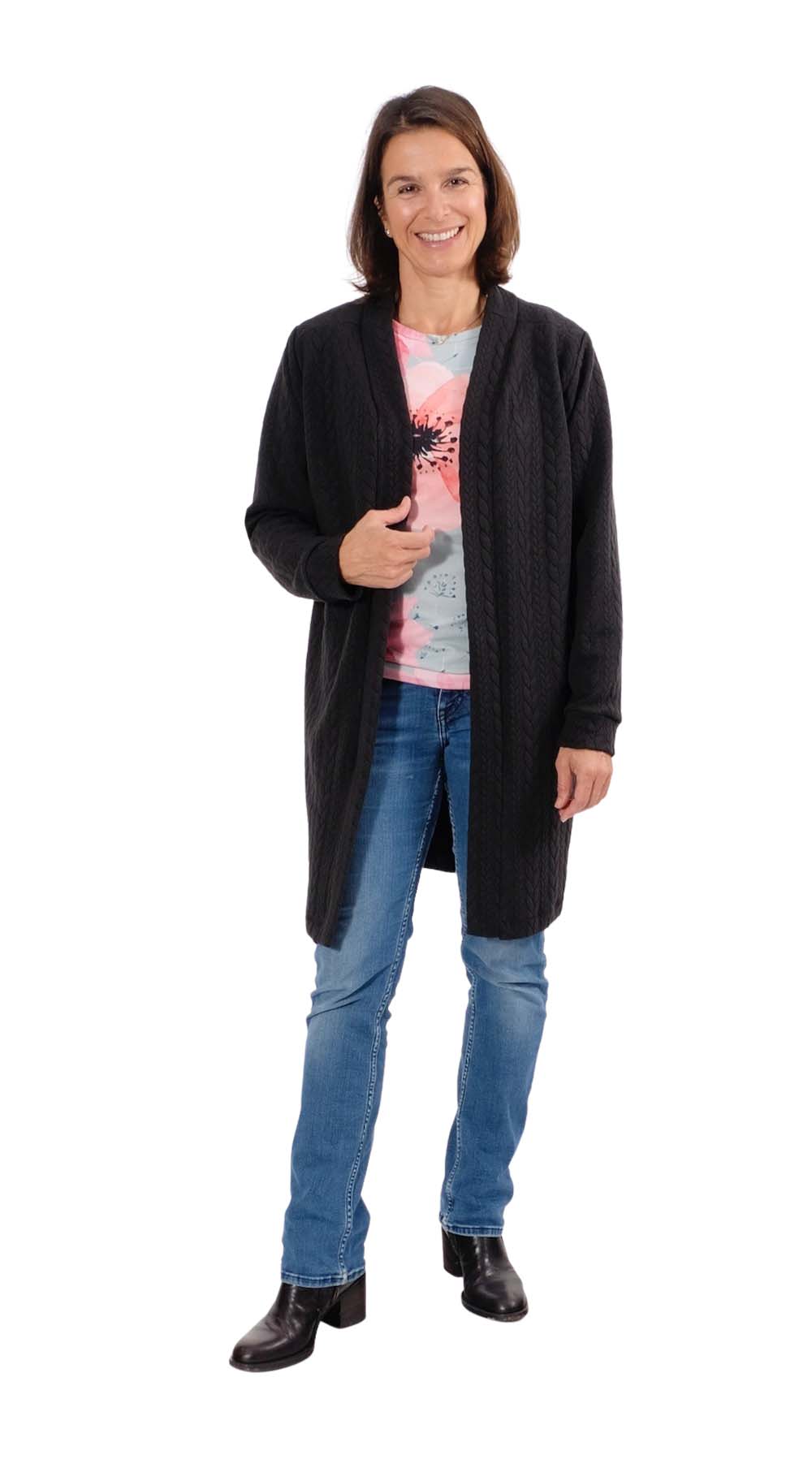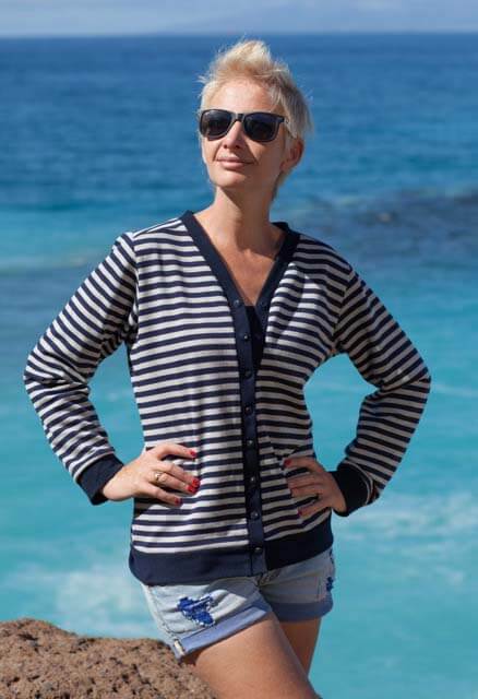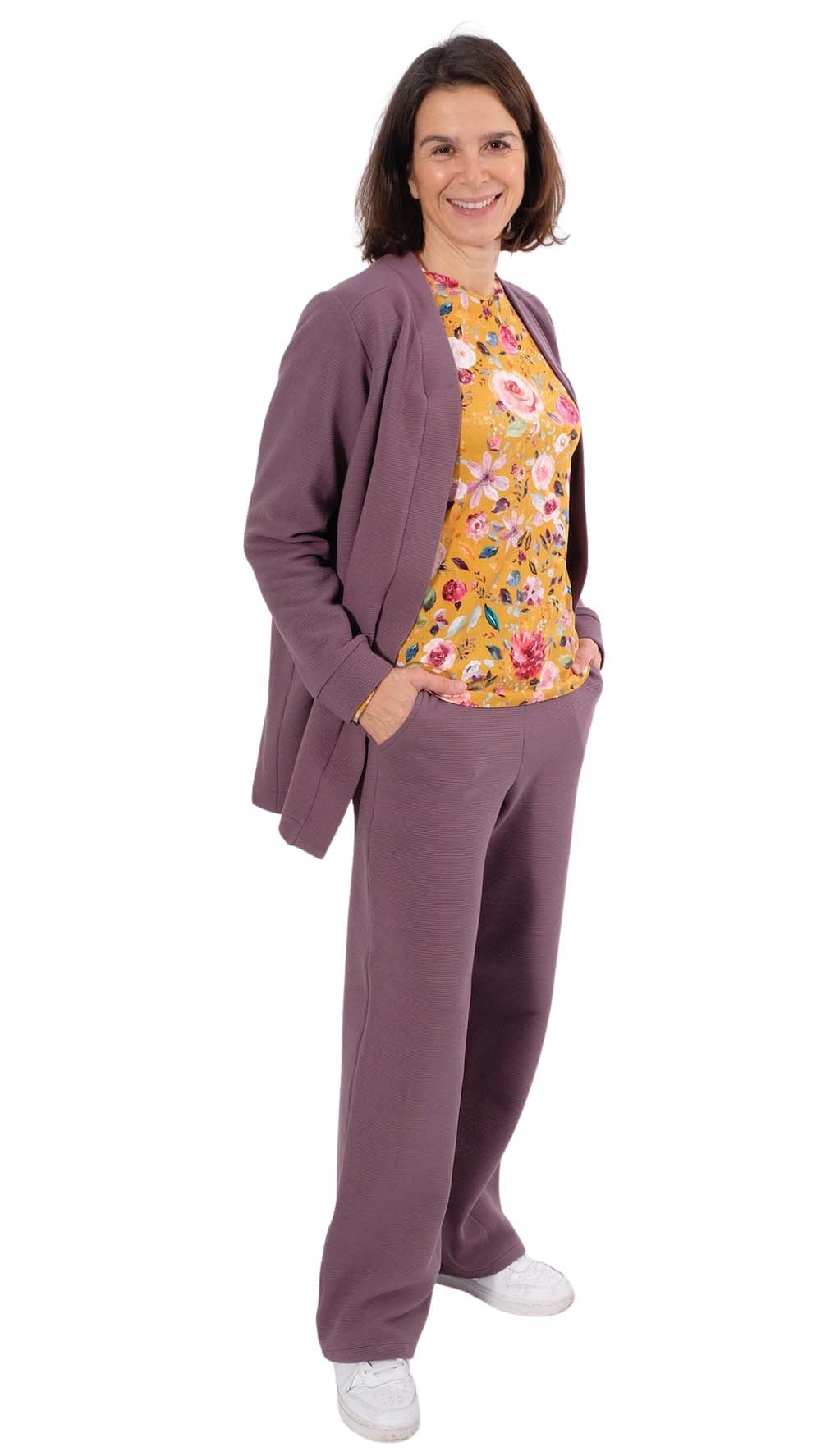 Dies ist eine sehr unkomplizierte Jacke (Cardigan), welche durch den Stoff immer wieder anders daher kommt. Die Jacke wird vorne geknöpft kann aber auch offen getragen werden. Die Jacke ist nicht nur bequem und kuschelig, sondern auch noch überaus praktisch. Die leger geschnittene Jacke ist ein idealer Begleiter für den Frühling und Herbst. Wenn die Jacke einmal genäht ist, wird eine zweite garantiert noch folgen! Ob in kurz oder in lang, sie wird immer wieder gut aussehen! Auch schön zu unsere Hose Alika.