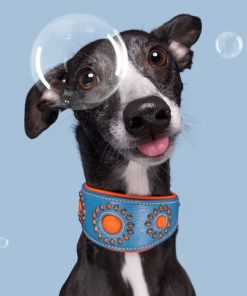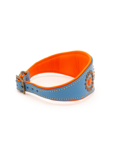 Das verstellbare Windhund-Halsband aus der Urban Kollektion speziell für Windhunde! Hergestellt aus blauem und orangem Leder, aber viel breiter als ein normales Halsband. Optimaler Komfort für Ihren Windhund! Das Jones hat das Aussehen der normalen Urban Bänder und ist mit auffälligen Bronze-Perlen ausgestattet. Blau mit orange und shiny Details, wer möchte das nicht?