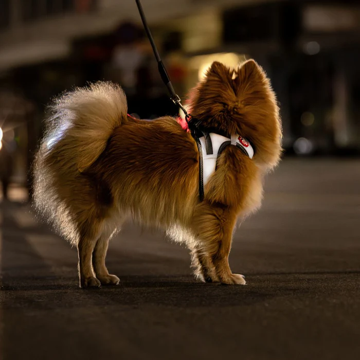 Das reflektierende Curli Hundegeschirr Glow Clasp Vest sorgt die in der Dunkelheit für extra Sicherheit. Die robuste und super softe, seidige Oberfläche des Step-In Brustgeschirrs ist mit einer zarten Schicht aus Glasstaub und Mikroprismen versehen. Diese sorgen dafür, dass das Geschirr die Oberflächenfarbe wechselt – von elegantem hellgrau im Tagesmodus hin zu strahlendem weiß bei Lichteinfall im Dunkeln.