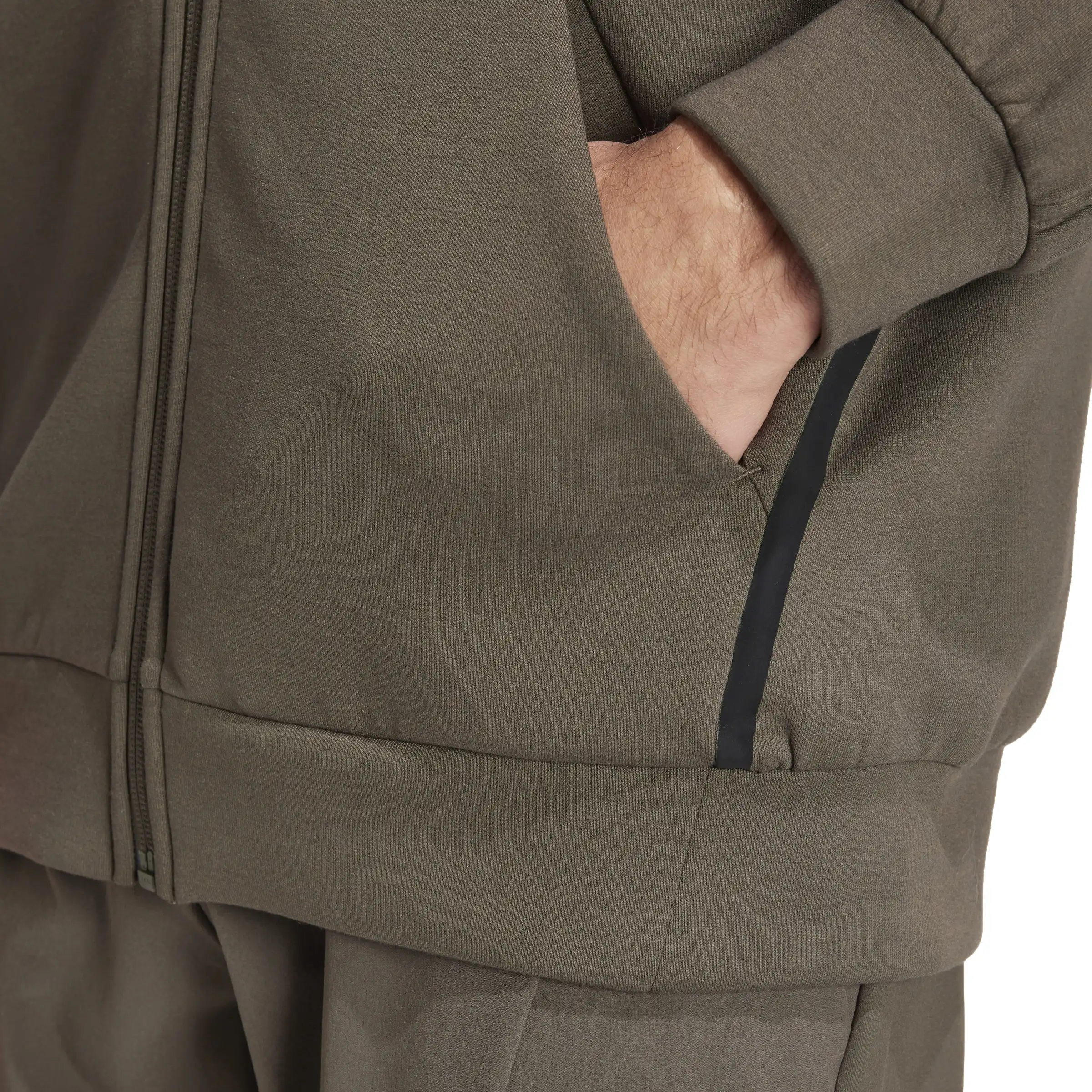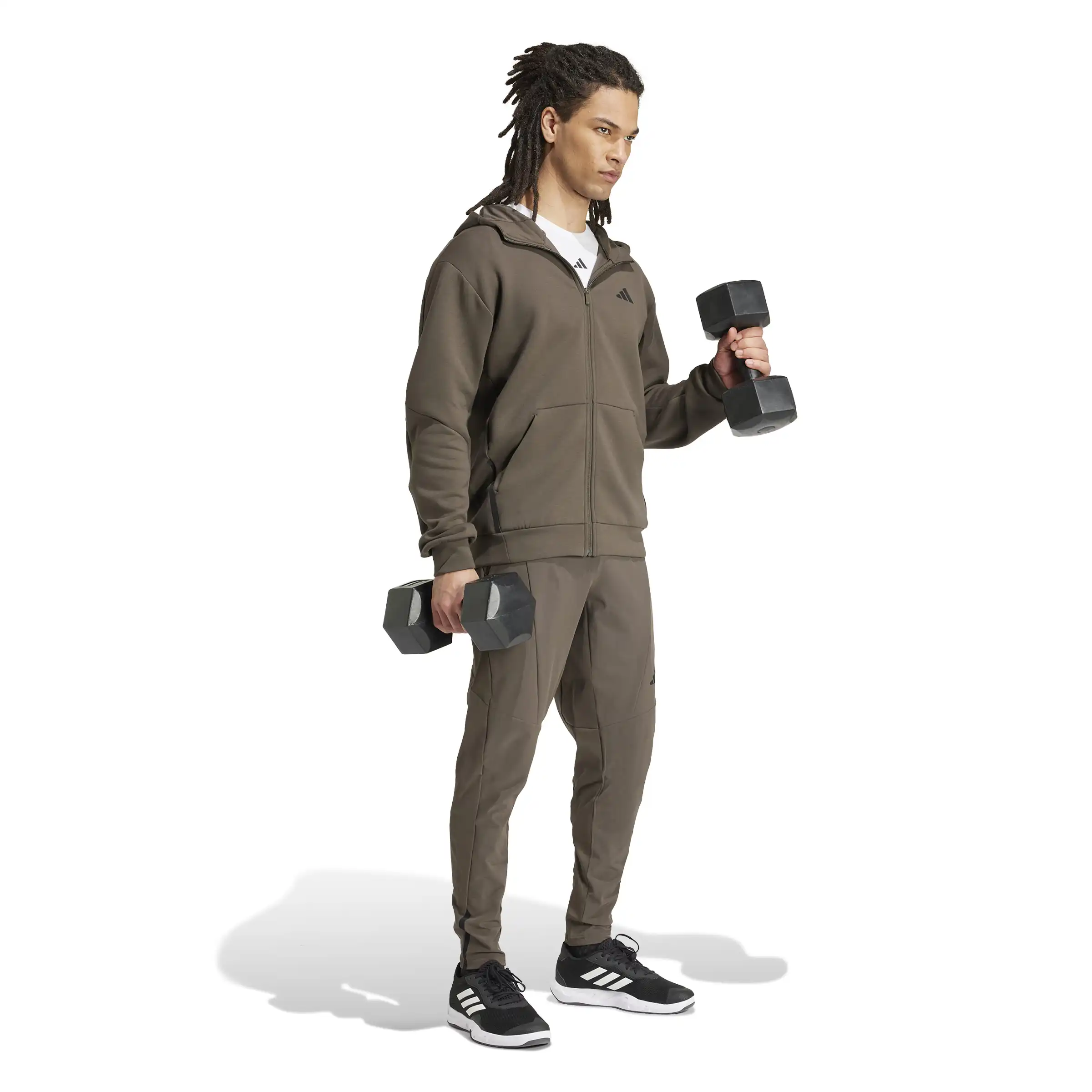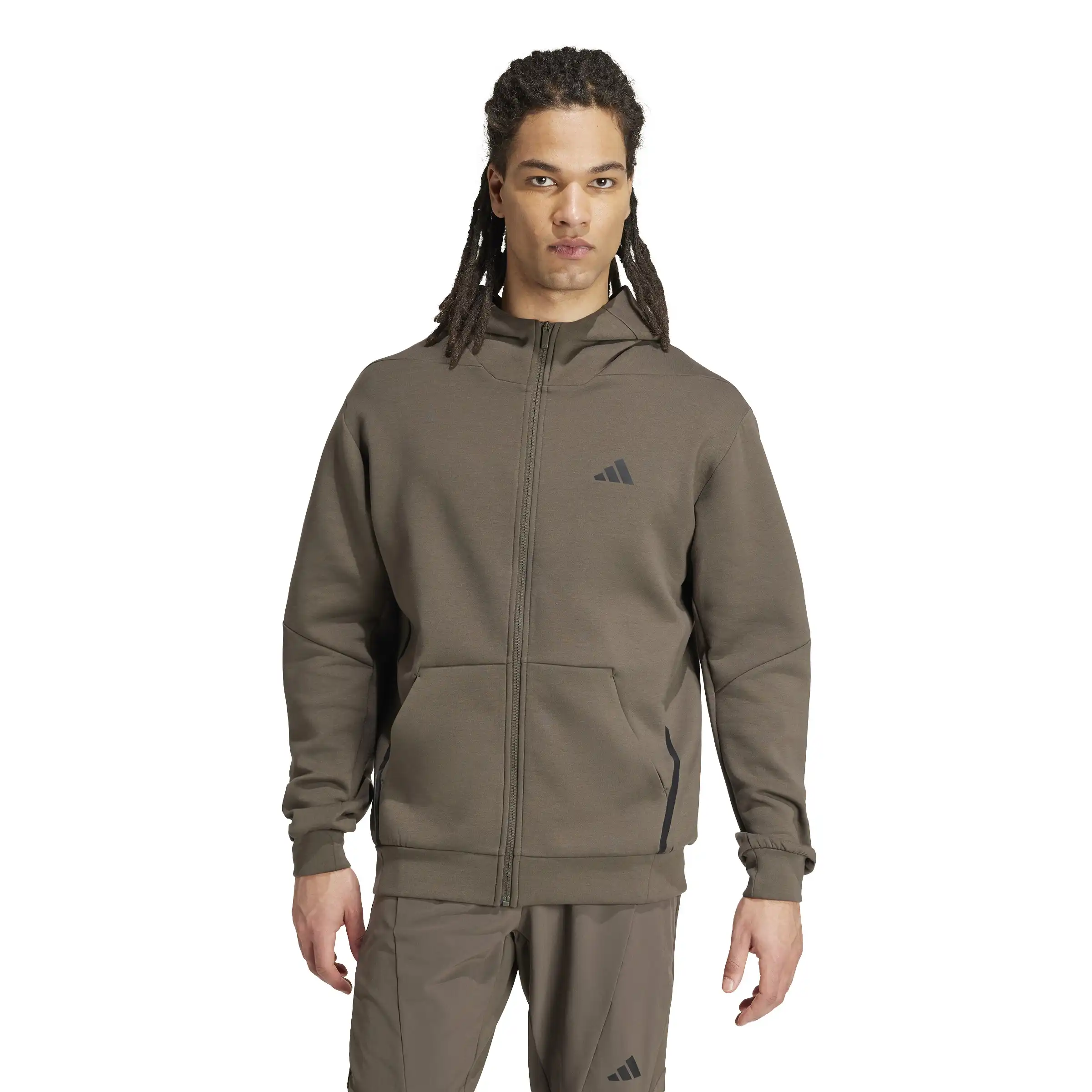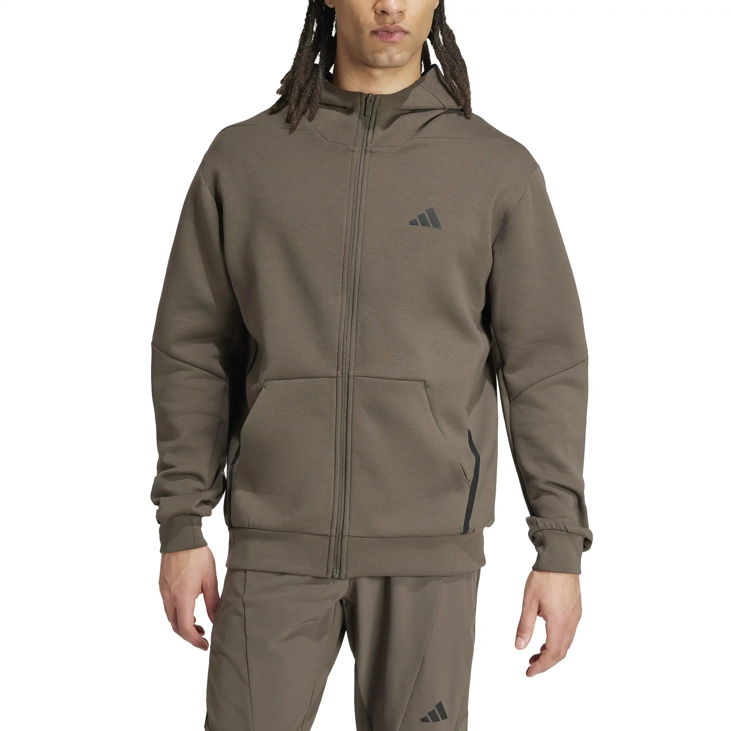 Mit dieser adidas Kapuzenjacke powerst du durch deine intensivsten Workouts. Die AEROREADY Technologie sorgt für ein angenehm trockenes Tragegefühl, damit du dich voll und ganz auf dein Training konzentrieren kannst. Und wenn nach dem Training Erholung ansteht, kannst du in dieser Kapuzenjacke einfach nur entspannen und genießen. Durch den Einsatz von Recyclingmaterialien können wir bereits vorhandene Gewebe und Fasern wiederverwenden und so dazu beitragen, Müll zu reduzieren. Auch erneuerbare Materialien sind ein Weg, uns weniger abhängig von nicht erneuerbaren Ressourcen zu machen. Unsere Produkte, die mit einem Mix aus recycelten und erneuerbaren Materialien hergestellt sind, bestehen zu mindestens 70 % aus diesen Materialien.