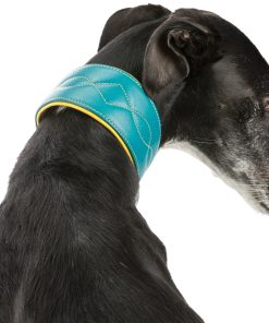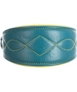Echtleder Windhundhalsband mit Zug-Stopp (S-M), petrol/gelb
