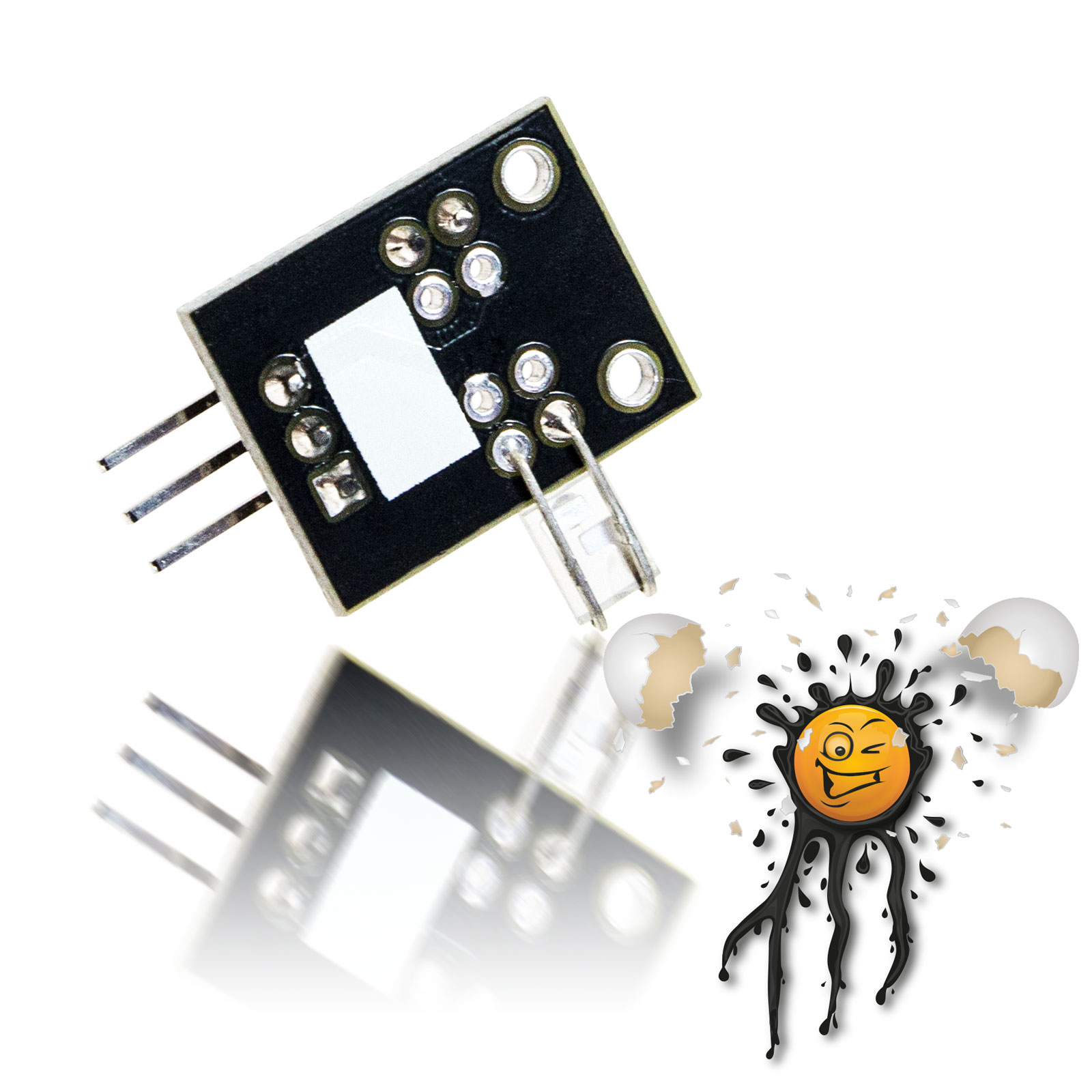1V ADC Herzschlag Sensor set Zur Messung der Herzschlagfrequenz muss ein Finger zwischen Infrarot LED und Sensor platzirert werden. Das Herzschlag Sensor Modul gibt dann über den Signalausgang gemäß der Absorptionsrate einen analogen Wert aus. Da der ESP8266 und ESP8285 einen maximales ADC Signal von 1V verarbeiten kann muss mittels den zum Liefrumfang gehörenden Widerständen die Signalstärke auf 1V limitiert werden.