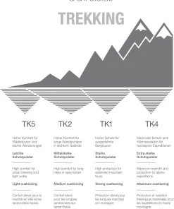 Mit ihrer extra starken Polsterung und ihrem Merinowoll-Mix sorgt die Wandersocke „TK1“ für maximalen Schutz und gute Wärmeisolation bei ausgiebigen Bergtouren unter jeglichen Wetterbedingungen. Schneller Feuchtigkeitstransport sowie die optimale Passform garantieren perfekte Temperatur und hohen Komfort am Fuß.