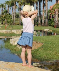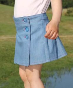 Dieser Rock kann aus Denim oder aus leichter Baumwolle genäht werden. Wer keine Falten möchte, der kräuselt den Stoff einfach ein. Mit oder ohne Strumpfhose bzw. Legging ist dieser Rock das ganze Jahr über tragbar. Das Modell ist vom Prinzip her einfach genäht und auch für Anfänger geeignet. Nur die Knöpfe auf dem Rockvorderteil könnten für blutige Anfänger etwas kniffelig sein. Vom Prinzip her kannst Du diese aber auch durch Druckknöpfe ersetzen. Dies sieht unserer Meinung nach aber nur bis Gr. 104 gut aus. Ab Gr. 116 empfehlen wir “normale Knöpfe”. Das ist aber auch immer eine Geschmacksfrage.