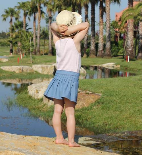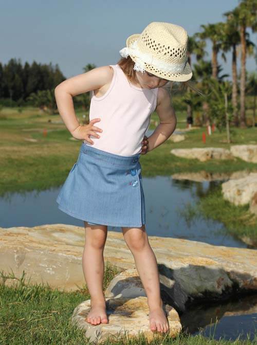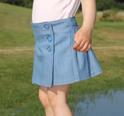 Dieser Rock kann aus Denim oder aus leichter Baumwolle genäht werden. Wer keine Falten möchte, der kräuselt den Stoff einfach ein. Mit oder ohne Strumpfhose bzw. Legging ist dieser Rock das ganze Jahr über tragbar. Das Modell ist vom Prinzip her einfach genäht und auch für Anfänger geeignet. Nur die Knöpfe auf dem Rockvorderteil könnten für blutige Anfänger etwas kniffelig sein. Vom Prinzip her kannst Du diese aber auch durch Druckknöpfe ersetzen. Dies sieht unserer Meinung nach aber nur bis Gr. 104 gut aus. Ab Gr. 116 empfehlen wir “normale Knöpfe”. Das ist aber auch immer eine Geschmacksfrage.