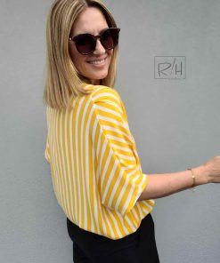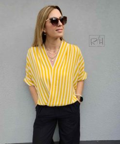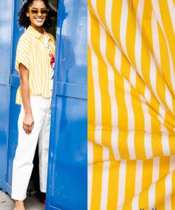 Dieser Viskose Crepe stoff mit breiteren Streifen ist leicht fallend und hat eine tolle Haptik. Diese Qualität ist pflegeleicht, knitterarm und bietet einen hohen Tragekomfort. Der Stoff eignet sie sich toll für leichte Sommerhosen, Tunikas, Hemden, Kleider, Röcke und vieles mehr. Abbildung Bluse Swatnje und Aila aus der Fibre Mood Nr. 15