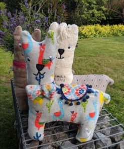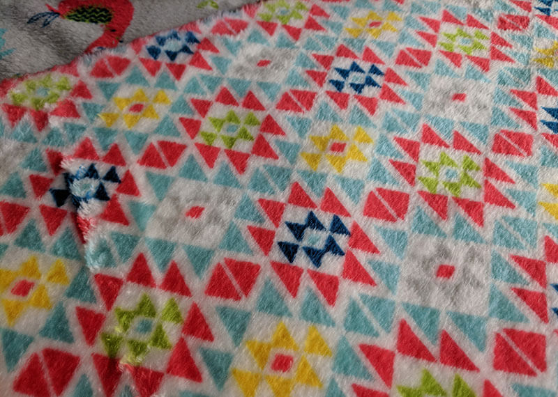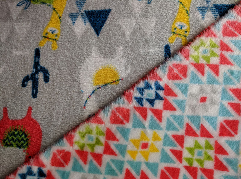 Ein wunderschönes weiches und kuscheliges Fleecematerial, wird oft auch als Flausch bezeichnet. Die eine Seite ist mit bunten Lamas auf Grau, die andere Seite mit einer bunten Musterung auf Weiß. Es ist ideal für Loopschals, Mäntel, Jacken, Röcke, Mützen und vieles mehr. Das Material ist dehnbar. Abbildung Schnittmuster Jacke Jannicke. Der Stoff kann auch ganz einfach am Rand eingesäumt werden und ist damit eine einfach gemachte Babydecke.