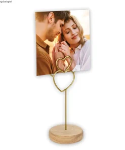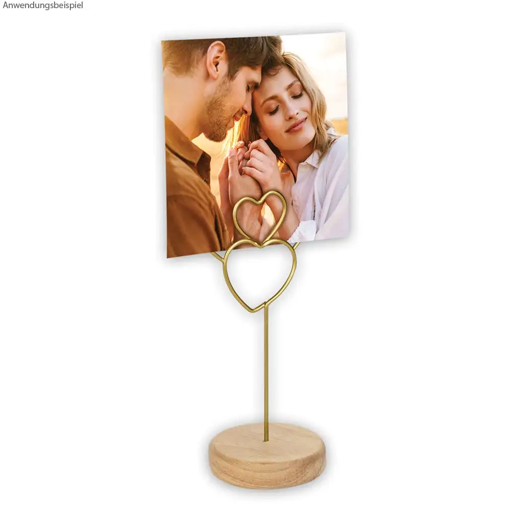 matches21 Fotoklemme Fotoclip Fotohalterung Metall goldfarben Herzen herzförmig Holzsockel Liebe 1 Stk 16,5 cm