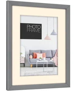 matches21 Fotorahmen mit Passepartout Bilderrahmen Rahmen Fotos Bilder Wechselrahmen Kunststoff grau 1 Stk – 3 Formate