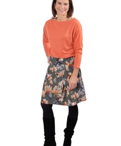 Ein hochwertiger French Terry Stoff aus Bambus/Elasthan in einem Grünton. Die Rückseite weist die typische Schlingenstruktur auf. Das Material ist ideal für Sweatshirts und Hosen. Er trägt sich angenehm auf der Haut. Abbildung Schnittmuster Poncho Wilka. Shirt Hilda in Mandarine. Rock Fabienne in Grau in French Terry. Aus Jersey diverse Schnittmuster wie z.B. Shirt Sue und Wasserfallshirt Kat, Kleid Maresa, Kleid Sandy, Shirt Sue und Hose Naomi in anderen Farbstellungen.