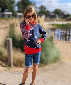 Ein hochwertiger Sommersweat Stoff aus Baumwolle/Elasthan mit Ankern bedruckt. Ideal für Mützen, Schals, Oberteile, Jacken, Kleider, Röcke und vieles mehr. Der Anker ist 5,5 cm groß. Abbildung Noel in blauer Farbstellung.