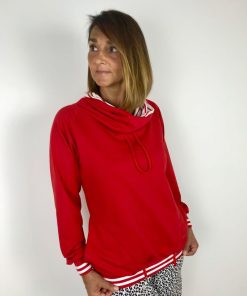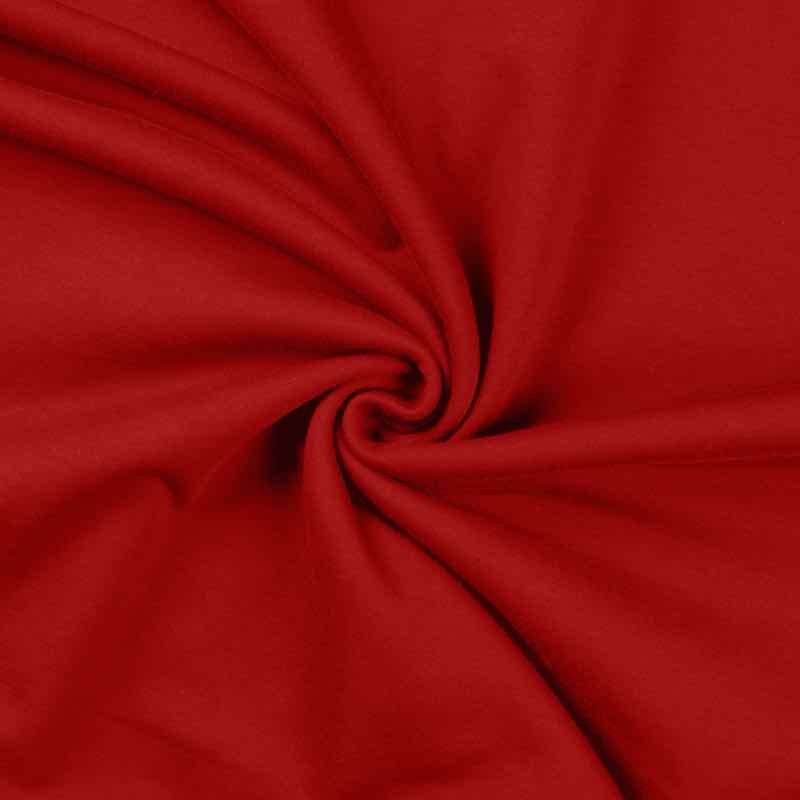 Ein hochwertiger French Terry Stoff aus Baumwolle/Elasthan in einem dunklen Rot. Die Innenseite ist kuschelig weich, da sie angeraut ist.