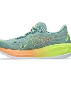 Der GEL-CUMULUS? 26 PARIS verleiht dir ein weiches Tragegefühl unter dem Fuß. Dieser neutrale Trainingsschuh für jeden Tag ist eine vielseitige Wahl für verschiedene Lauftrainings und Distanzen. Diese Farbkombination ist von der ?Stadt der Lichter? und ihren energetisierenden Tönen bei Sonnenaufgang und Sonnenuntergang inspiriert. Die FF BLAST? PLUS-Dämpfung und die PureGEL? Technologie sind strategisch in der Mittelsohle platziert. Diese Materialien sorgen für softere Landungen und kraftvolleren Absprung beim Training. Zusätzlich sorgt die FLUIDRIDE?-Außensohle für sanftere Übergänge zwischen den Schritten.
