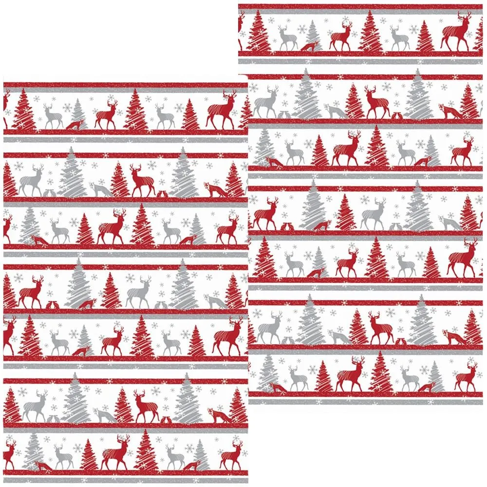 Geschirrtücher FRIEDA Hirsch Karo Schneesterne rot grau Baumwolle 2 Stk 70×40 cm