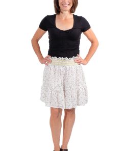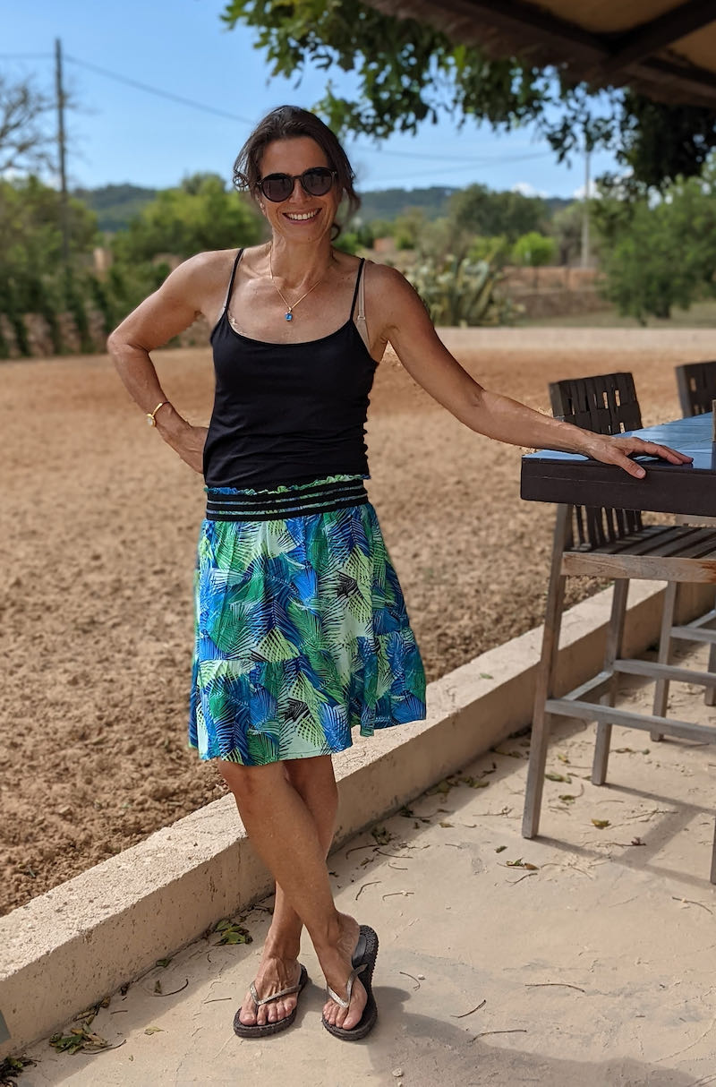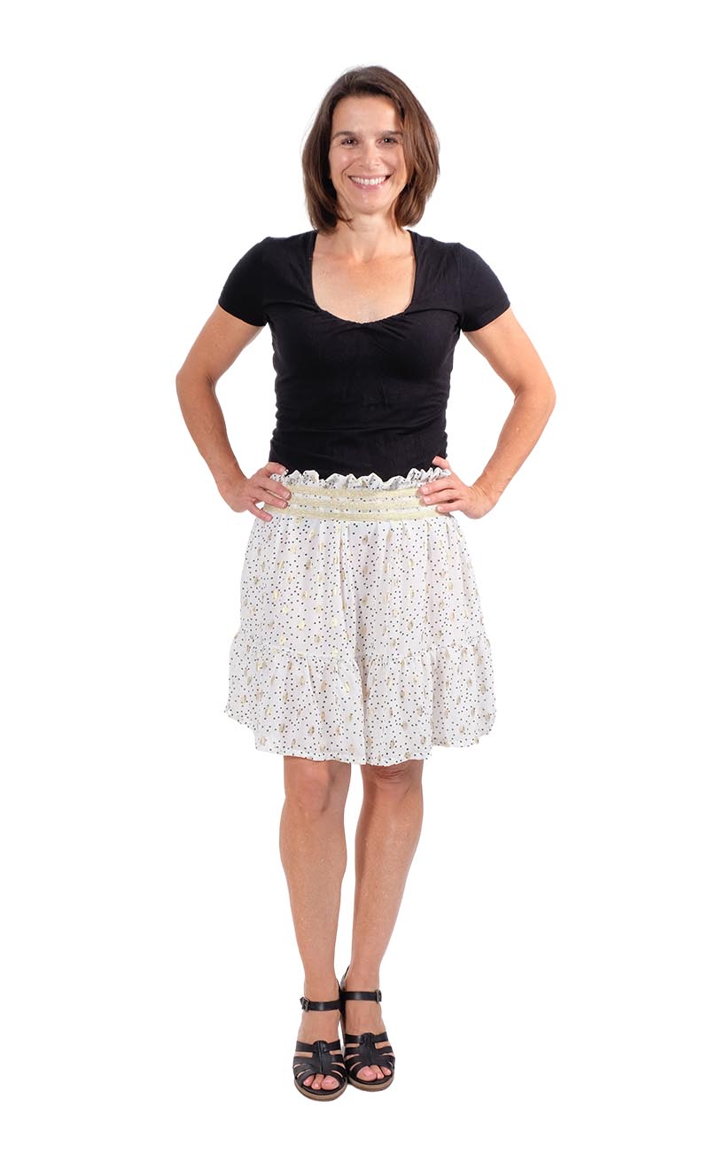 Gummiband mit 3 Streifen, verschiedene Farben – 5 cm breit. Preis pro 3 Meter – Längenangabe erfolgt über das Feld Menge. Bei zwei gekauften Einheiten werden 2 x 3 Meter geliefert, bei 3 Einheiten 3 x 3 Meter u.s.w. Abbildung Stufenrock Edina und Bluse Diana.