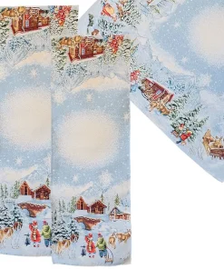 Die winterliche Tischwäsche-Serie MARLA bringt mit ihrer malerischen Szenerie aus verschneiten Hütten, Hirschen & Waldlandschaften eine festliche Atmosphäre in dein Zuhause. Das gewebte Motiv überzeugt durch liebevolle Details & stimmungsvolle Farbgebung – ideal für Advent, Weihnachten & die gesamte Winterzeit. Die Kombination aus zarten Blautönen & winterlichen Elementen verleiht der Tischdecke und dem Tischläufer eine harmonische, ruhige Ausstrahlung. Ob im Esszimmer, Wohnzimmer oder auf dem Sideboard – mit dieser Tischwäsche wird jeder Tisch zum stimmungsvollen Blickfang. Die Serie MARLA ist als Tischdecke & Tischläufer in verschiedenen Größen erhältlich und eignet sich sowohl für kleine als auch große Tischformate. Hergestellt aus 100 % Polyester überzeugt sie durch ihre pflegeleichten Eigenschaften: maschinenwaschbar bei 30 °C, schnelltrocknend, formstabil & knitterarm. Auch nach mehreren Wäschen bleiben die Farben brillant & das Gewebe angenehm glatt. Ob als dekoratives Highlight in der kalten Jahreszeit oder als stilvolle Grundlage für deine weihnachtliche Tischdeko – MARLA sorgt für Gemütlichkeit & eine festliche Stimmung in deinem Zuhause.