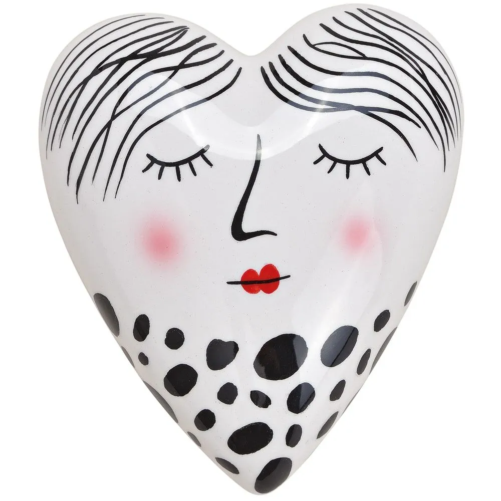 Herz mit Gesicht Dekoherz modern schwarz weiß Dekofigur Keramik 1 Stk 8x4x10 cm