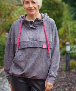 Dieser schöne Oversized – Hoodie hat eine raffinierte Kragenlösung. Das Schnittmuster ist für blutige Nähanfängerinnen nicht zu empfehlen, ein wenig Jersey-Näherfahrung solltest Du für dieses Shirt schon haben. Für weniger Geübte empfehlen wir den Reißverschluss einfach wegzulassen, die Weite ist „weit genug“ für den Kopfumfang, damit wird das Teil sehr einfach und ist dann auch für Nähanfängerinnen gut machbar.
